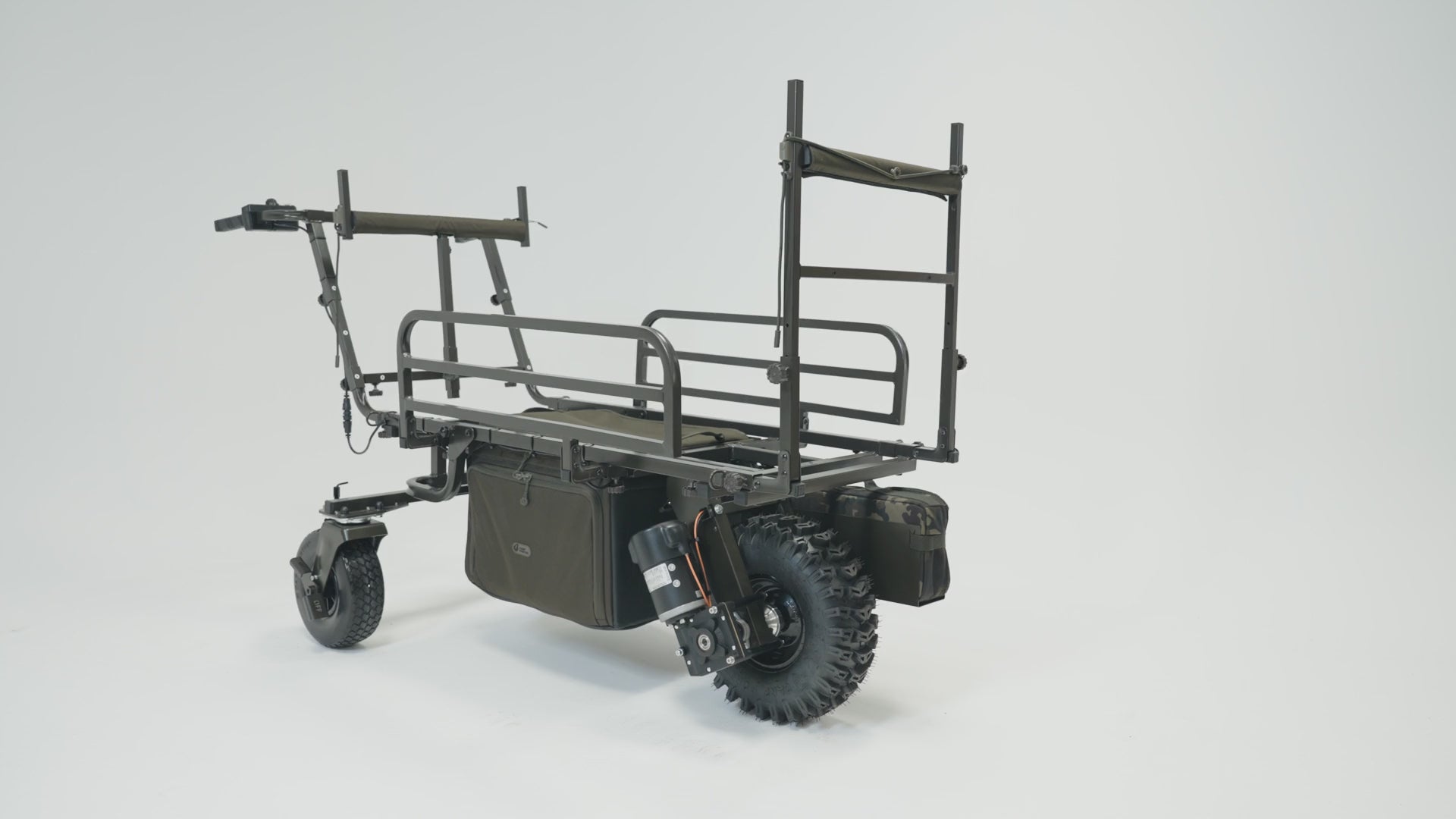 Normaler Preis €1.799,99Normaler PreisGrundpreis / pro€1.799,99Verkaufspreis €1.799,99Introducing the most feature packed, premium barrow ever to hit the market, a true heavyweight champion built for anglers who demand the very best. Engineered to handle the largest of loads with absolute ease, this barrow boasts an extended base and fully adjustable multi point configuration, allowing it to adapt effortlessly to your gear, session length, and terrain.Whether you're hauling a mountain of tackle for a week-long adventure or simply loading up for a big day on the bank, this barrow makes light work of even the bulkiest setups. The twin rear swivel wheels redefine manoeuvrability, turning tight corners and navigating paths with an effortless glide that truly needs to be experienced to be believed.This isn’t just a barrow; it’s the Rolls Royce of load lugging solutions. Refined, robust, and remarkably smooth, it’s as much about comfort and ease as it is about raw power.With a host of optional extras available, from side bags to front barrow bags, you can tailor this barrow to your exact needs, creating the perfect mobile basecamp for any session.When only the best will do, this is the barrow that delivers on every level, luxury, capacity, control, and capability. It’s not just a means of transport. It’s the start of your adventure.Dimensions:Length: Standard 110cm | Extended 140cmWidth: Standard 61cm | Extended 90cmPack-down Size: 110cm x 61cmPower Porter Electronics At Carp Porter, we’ve reimagined our electronic systems from the ground up. The result is a new generation drive control unit, purpose built for anglers and developed in partnership with a leading UK electronics specialist. Fitted as standard on all 2025 Power Porters, this system delivers unmatched performance, reliability, and control.What’s New for 2025We have made significant improvements with an upgraded control unit featuring modernised circuitry and a cleaner design that reduces the risk of water ingress and improves long-term reliability. Additionally, the system now operates at 20kHz for quieter performance, eliminating the high-pitched whine that was present in older models.Additional FeaturesThe Slow Start/Stop system provides smooth acceleration and deceleration for controlled movement, ensuring you can manoeuvre with precision and confidence in any situation.The Instant Stop feature halts operation immediately when you release the power button within 6 seconds, making it ideal for navigating tight swims or when loading up.Take complete control of your pace with the intuitive Adjustable Speed Dial that allows you to fine-tune your speed and switch the unit on or off using a single, convenient control.Reversing fully loaded barrows has never been easier thanks to three selectable reverse speeds that provide the power and control needed for reversing when necessary.Transportation and storage have been simplified with our Quick-Release Connectors for fast, cable-free breakdown at key connection points, allowing you to quickly disassemble the barrow.Glider Power Porter Dark Kamo
