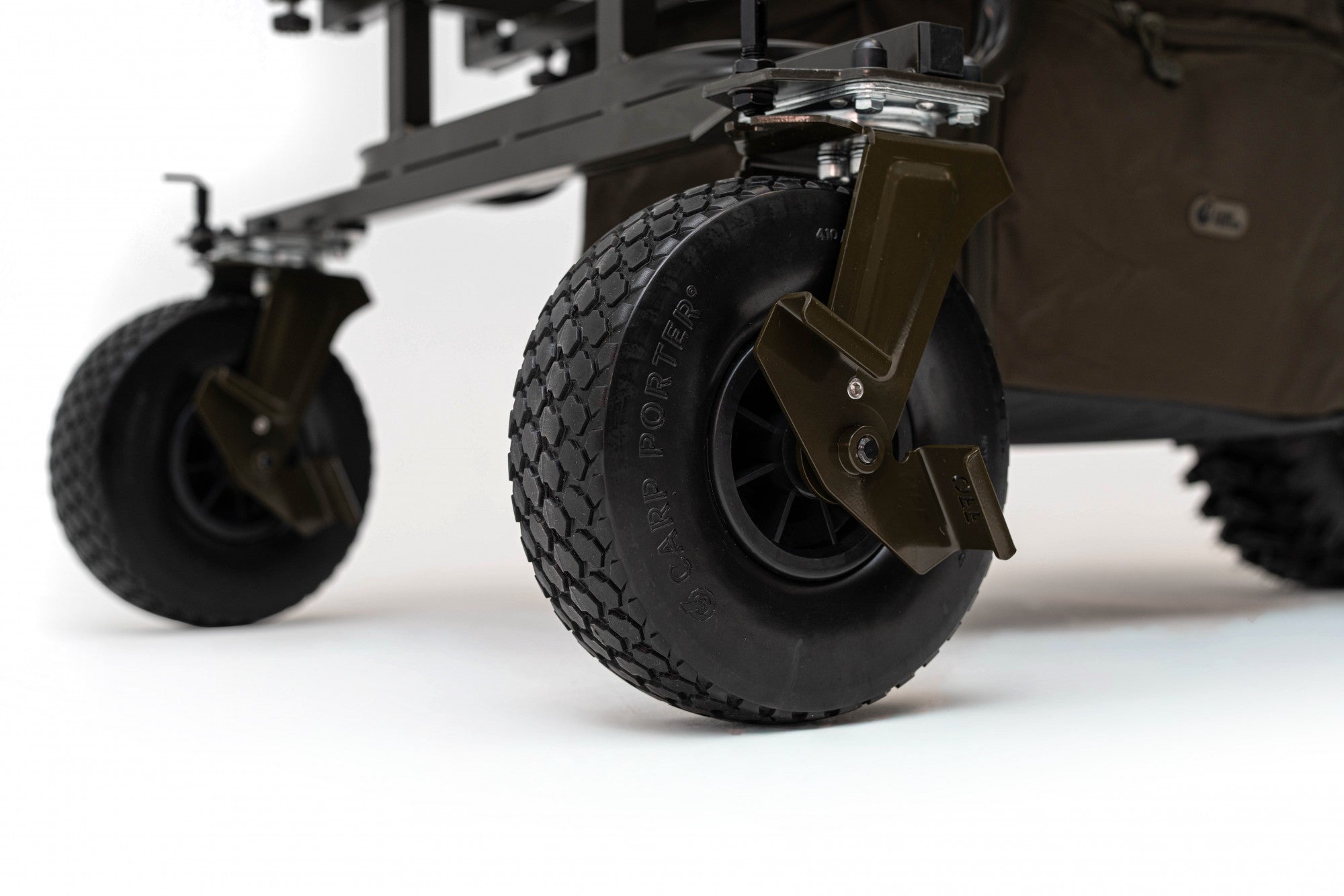 Mit dem Glider Power Porter stellen wir Ihnen den funktionsreichsten Premium-Barrow vor, den der Markt je gesehen hat, einen wahren Schwergewichts-Champion für Angler, die das Beste erwarten! Er wurde so konstruiert, dass er die schwersten Lasten mühelos transportiert. Seine Features umfassen eine vergrößerte Basis und eine vollständig verstellbare Multipunkt-Konfiguration, wodurch er sich ohne Probleme Ihrer Ausrüstung, Sessionlänge und jedem Terrain anpassen lässt. Ob es darum geht, einen Berg an Tackle für ein wochenlanges Abenteuer zu transportieren, oder einfach nur für einen großartigen Tag am Wasser – dieser Barrow wird selbst mit dem umfangreichsten Setup spielend fertig. Die doppelten, hinteren Schwenkräder definieren Manövrierbarkeit neu. Das Befahren von engen Kurven und langen Strecken gelingt dank des Glider Power Porter so problemlos, dass man es erlebt haben muss, um es zu glauben.Dies ist nicht nur einfach ein Barrow, es ist der Rolls Royce der Tackletransport-Lösungen. Raffiniert, robust und erstaunlich geschmeidig – dieser Barrow vereint Komfort und Leichtigkeit perfekt mit absolut brachialer Kraft.Dank einer Vielzahl von optionalen Extras, von Side Bags bis Front Barrow Bags, können Sie diesen Barrow auf Ihre exakten Bedürfnisse anpassen, wodurch er zum perfekten, mobilen Basecamp für jede Session wird. Wenn nur das Beste gut genug ist, dann ist dies der Barrow, der auf jeder Ebene abliefert – Luxus, Kapazität, Kontrolle und Leistungsfähigkeit. Das ist nicht nur ein Transportmittel, es ist der Beginn eines neuen Abenteuers!Power Porter Electronics Wir von Carp Porter haben unsere elektronischen Systeme von Grund auf neu erdacht. Das Ergebnis ist eine neuartige Fahrkontrolleinheit, welche in Partnerschaft mit einem führenden Elektronik-Spezialisten aus dem Vereinigten Königreich gezielt für Angler entwickelt wurde. Dieses System, das standardmäßig in allen 2025 Power Porters verbaut wird, liefert unvergleichliche Performance, Verlässlichkeit und Kontrolle.Was ist neu in 2025?Mit einer überarbeiteten Kontrolleinheit haben wir bedeutende Verbesserungen vorgenommen. Diese beinhaltet einen modernisierten Schaltkreis und ein besseres Design, das das Risiko von eindringendem Wasser minimiert und die dauerhafte Zuverlässigkeit verbessert. Zudem arbeitet das System nun mit 20kHz, wodurch der Barrow leiser performt und das hochtönige Heulen der älteren Modelle der Vergangenheit angehört. Zusätzliche FeaturesDank des Slow Start/Stop Systems beschleunigt und verlangsamt der Barrow sanft, wodurch das Fahren kontrolliert wird und das Manövrieren in jeder Situation mit Genauigkeit und Vertrauen gelingt.Das Instant Stop Feature bringt nach sechs Sekunden alles zum Stehen, wenn man den Power-Knopf loslässt – ideal für enge Angelplätze oder beim Beladen.Übernehmen Sie die volle Kontrolle über Ihr Tempo, dank des intuitiven Adjustable Speed Dial. Dank ihm lässt sich die Geschwindigkeit präzise einstellen. Weiterhin lässt sich die Einheit mittels eines praktischen Schalters ein- und ausschalten.Das Zurücksetzen eines vollbeladenen Barrows war nie einfacher! Dank der drei wählbaren Rückfahr-Geschwindigkeiten haben Sie jetzt die Power und Kontrolle, die im Fall der Fälle für das Rückwärtsfahren vonnöten ist.Transport und Aufbewahrung wurden vereinfacht, denn dank unserer Quick-Release Connectors an den Hauptverbindungspunkten bauen Sie den Barrow schnell und kabelfrei auseinander.